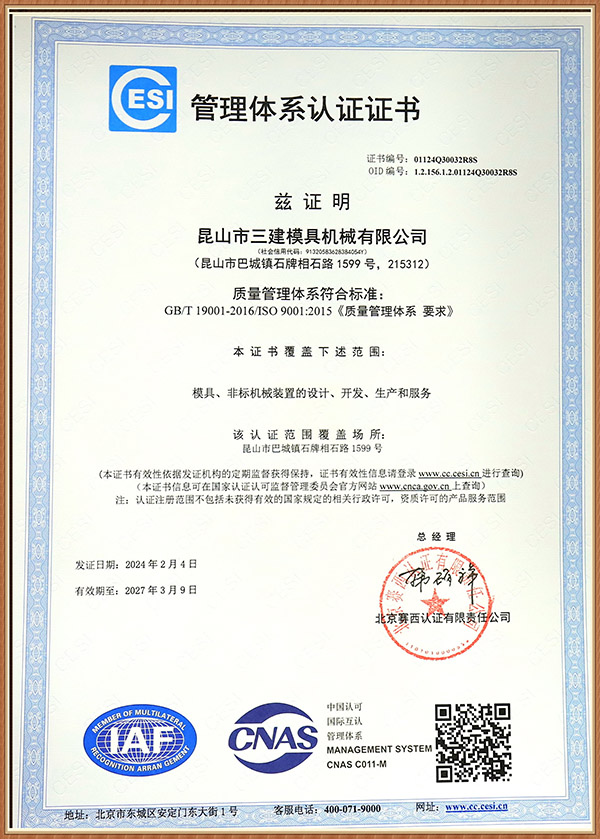 昆山市三建模具機械有限公司 創(chuàng)建于1996年,是一家研發(fā)生產(chǎn)電冰箱模具(電冰箱門、箱真空成型吸塑模、沖孔切邊模、 發(fā)泡內(nèi)外夾具、沖壓模具)產(chǎn)品并提供成套專業(yè)化控制解決方案的企業(yè)。 公司位于昆山市經(jīng)濟技術開發(fā)區(qū)石牌工業(yè)配套區(qū),交通便利。公司占地面積3.3萬平方米,建筑面積1.2萬余平方米,固定資產(chǎn)達5000萬元。 公司已通過ISO 9001:2008認證。 公司現(xiàn)有員工120人,各類專業(yè)技術人員35人。擁有蘇州市級企業(yè)技術中心和省級工程技術研究中心,擁有優(yōu)良的專業(yè)化研發(fā)團隊和自主知識產(chǎn)權。 公 司擁有完善的銷售網(wǎng)絡,產(chǎn)品80%以上出口,銷往全球10多個國家和地區(qū)。主要客戶品牌如三星、松下、日立、東芝、夏普、三菱、三洋、星崎、LG、伊萊克斯、惠而浦等。 公司旗下?lián)碛刑K州...